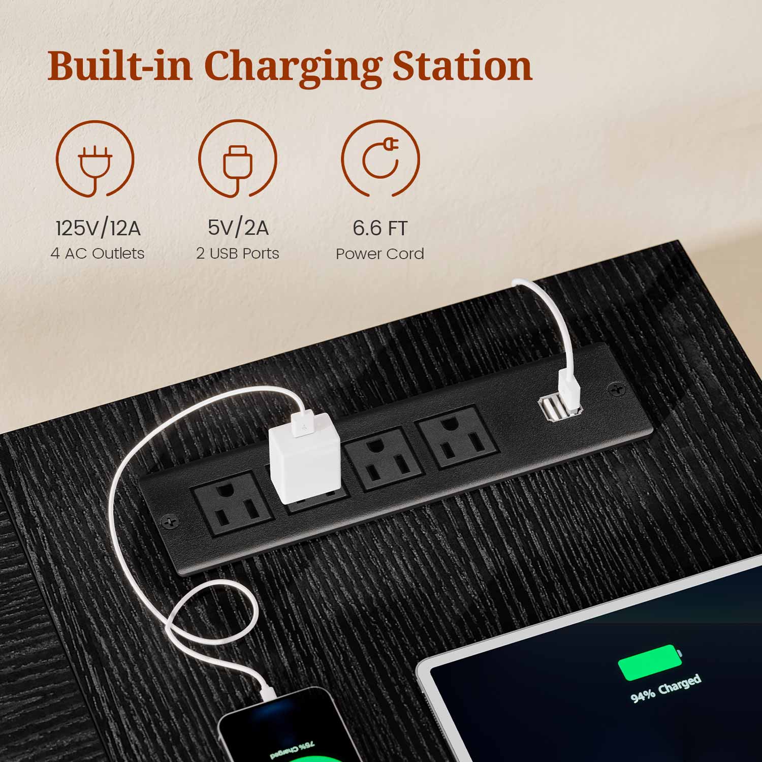 【Useful Power Outlets】Our home office Desk includes 4-outlet & 2 USB ports to provide power for up to 6 devices simultaneously. Power outlet allows you to charge mobile devices such as cell phones, tablets, printers, etc.