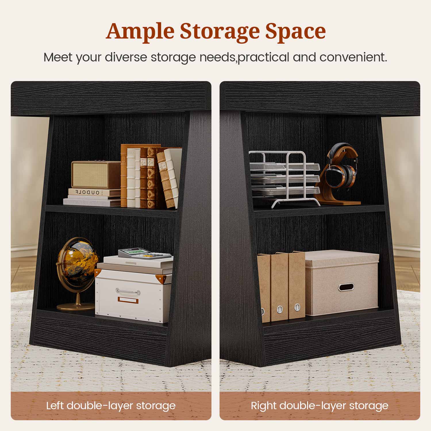 【Ample & Organized Storage】Double pedestal with spacious shelves keeps supplies, books & files organized & within arm's reach. Achieve effortless workspace efficiency & clutter-free focus!