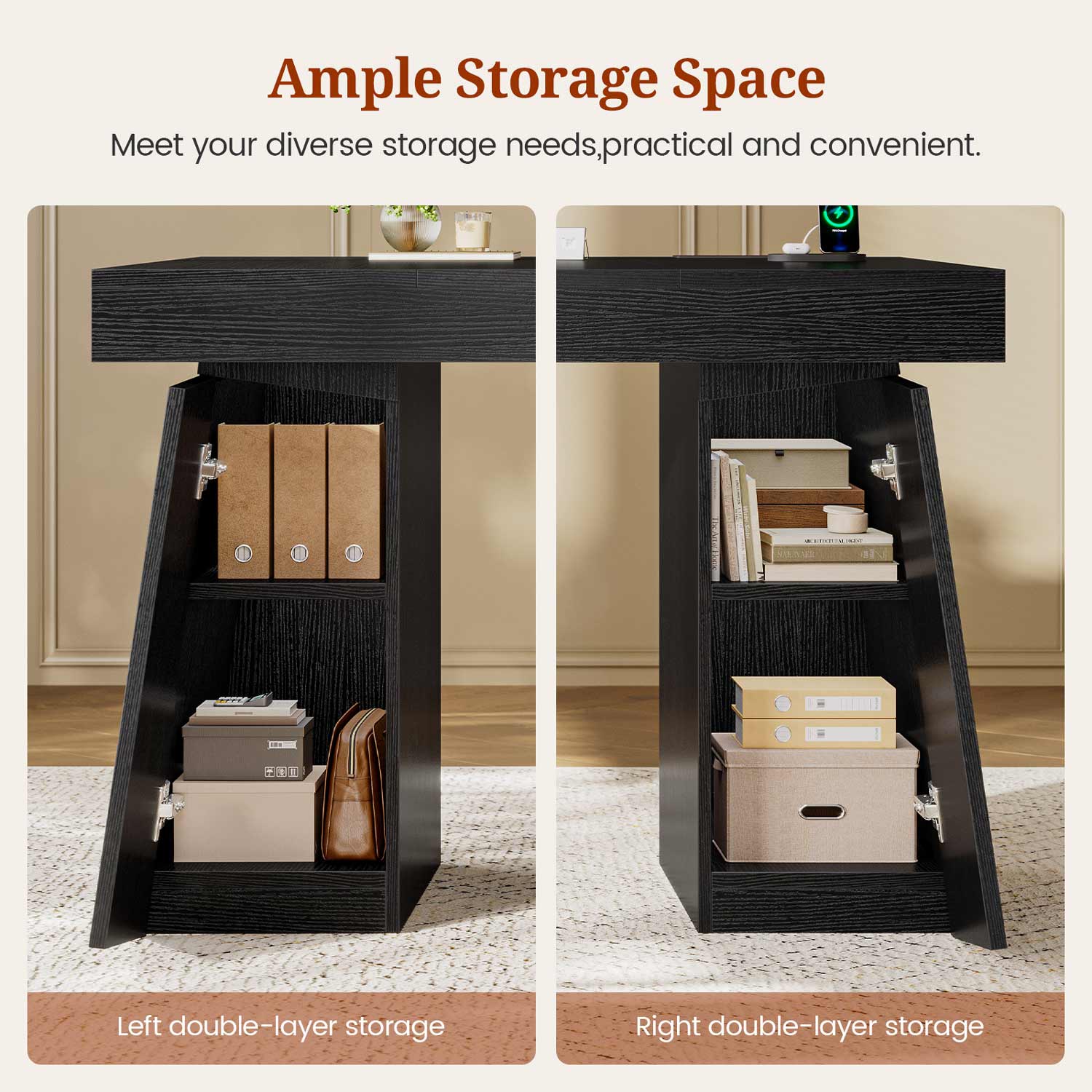 【Ample & Organized Storage】Double pedestal with spacious cabinet keeps supplies, books & files organized & within arm's reach. Achieve effortless workspace efficiency & clutter-free focus!