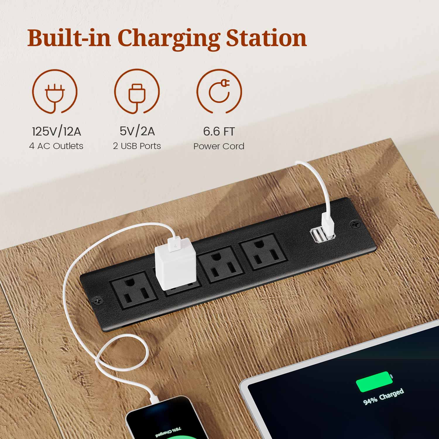 【Useful Power Outlets】Our home office Desk includes 4-outlet & 2 USB ports to provide power for up to 6 devices simultaneously. Power outlet allows you to charge mobile devices such as cell phones, tablets, printers, etc.