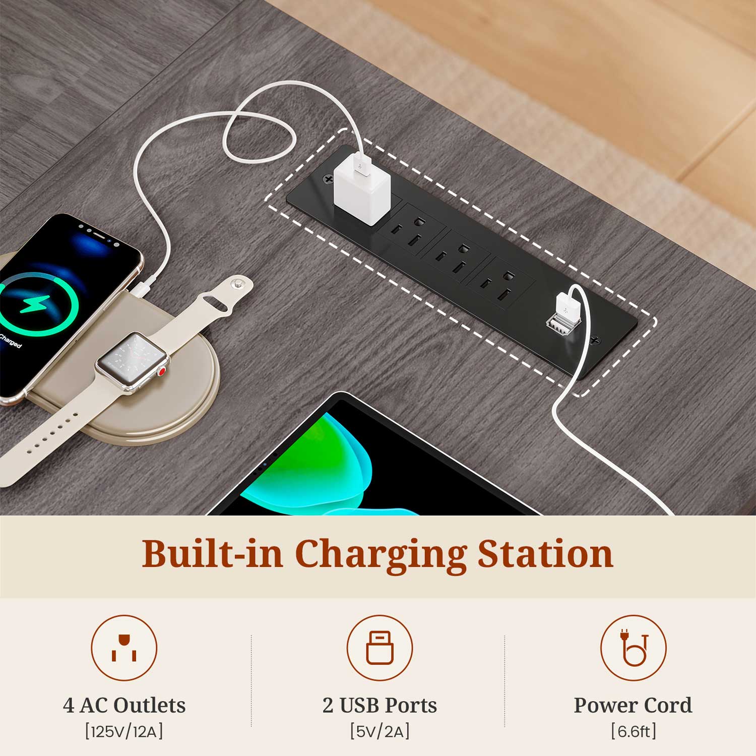 【Built-in Power Outlet】The executive desk is equipped with 4 plug outlets and 2 USB ports to provide power for up to 6 devices simultaneously, including mobile phones and other electronic devices.