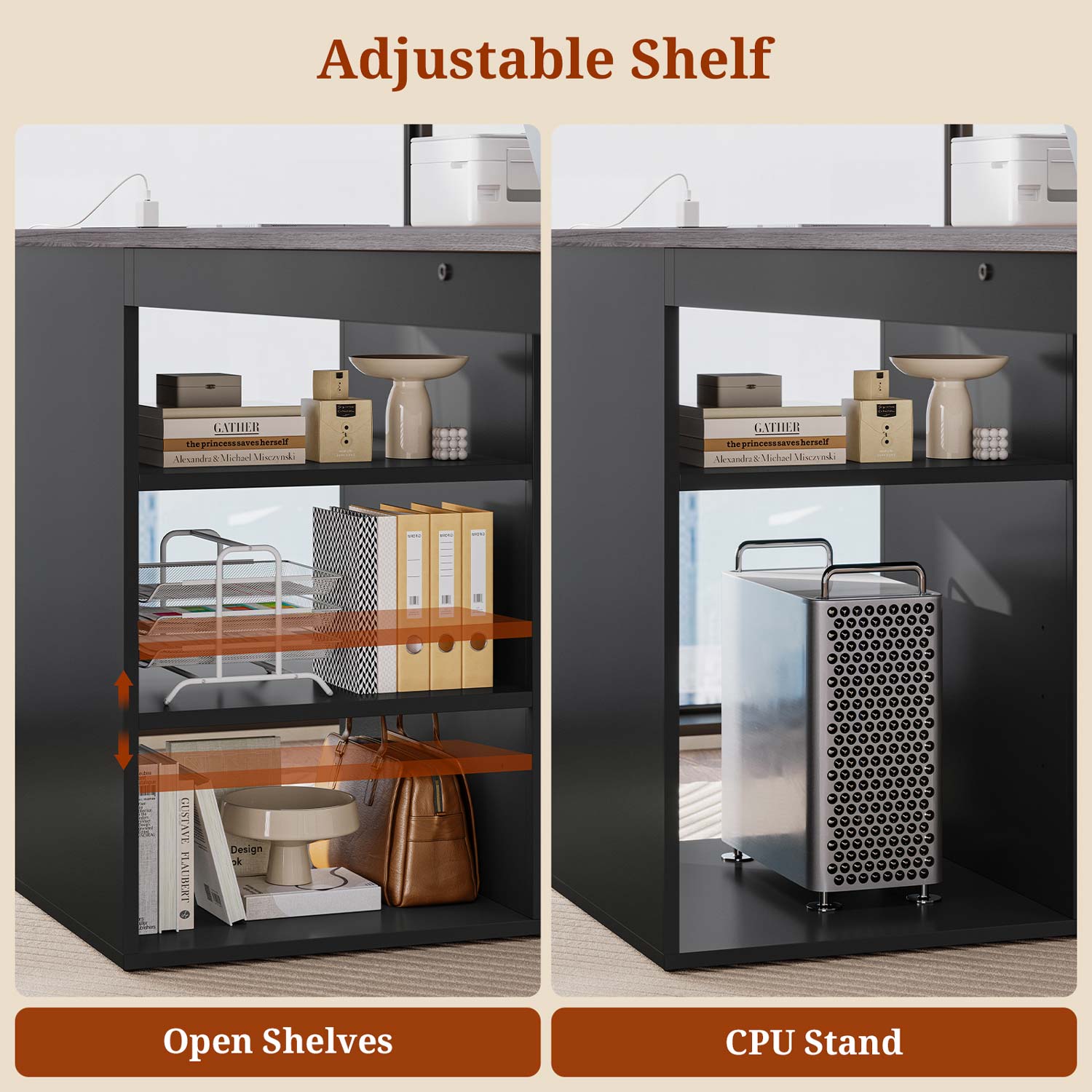 Workstation Furniture with Power Outlet & Adjustable Storage Shelves