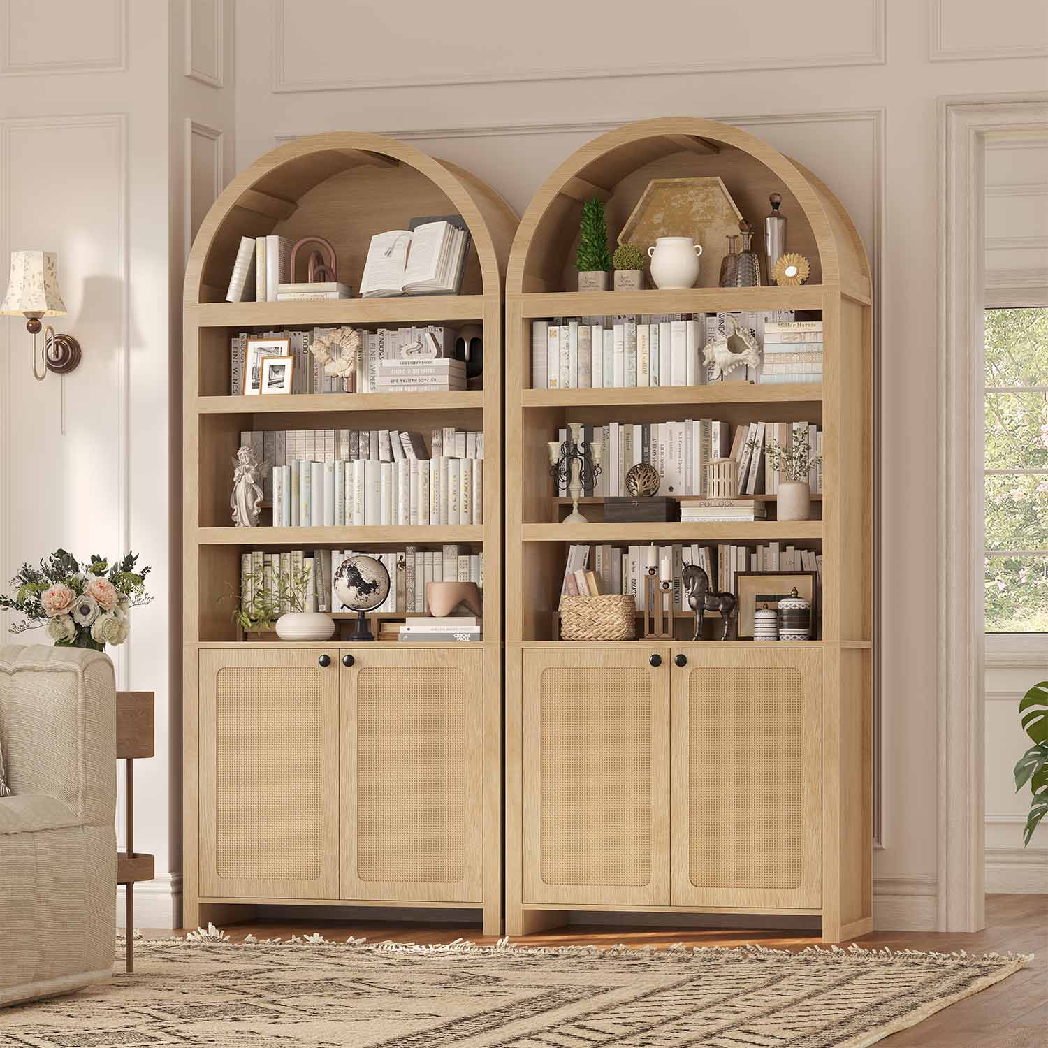 【Elegant Architectural Design】: Featuring an exquisite arched cabinet top and robust solid board construction, this bookcase not only adds functionality but also an undeniable touch of class to any room.